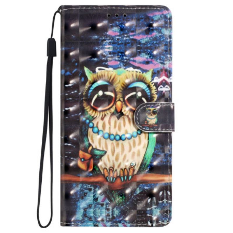 Bőrtok Oppo A98 5g 3d Bagoly Szíjjal