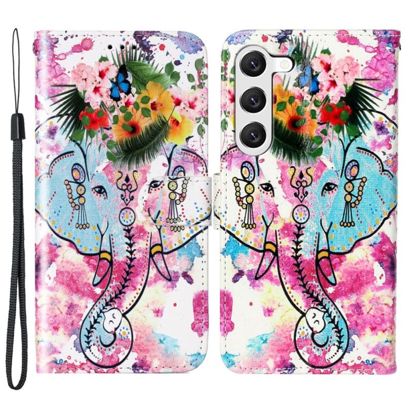Bőrtok Samsung Galaxy S24 5g Virágos Elefánt Szíjjal