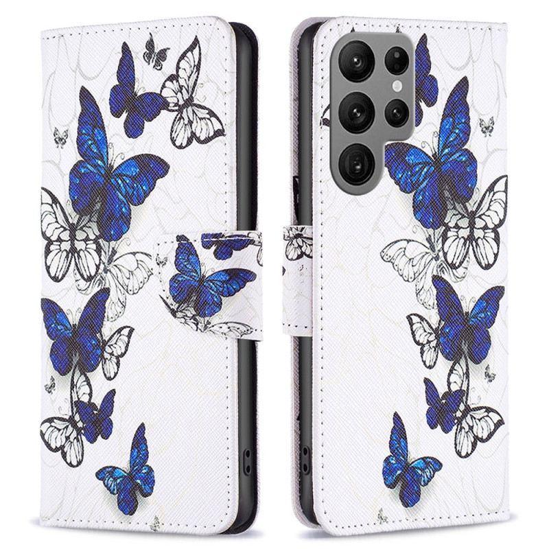 Bőrtok Samsung Galaxy S24 Ultra 5g Kék Pillangók Repülése