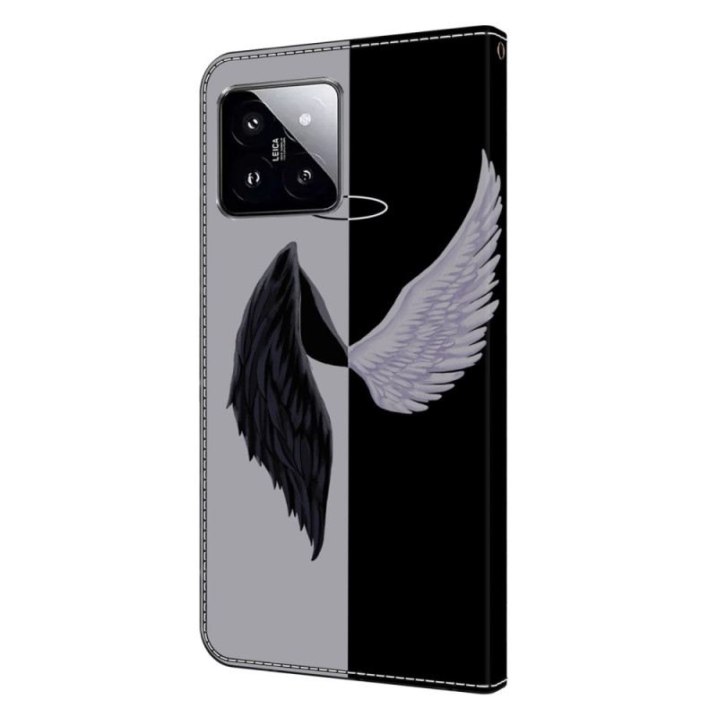 Bőrtok Xiaomi 14 Fekete-fehér Szárnyak