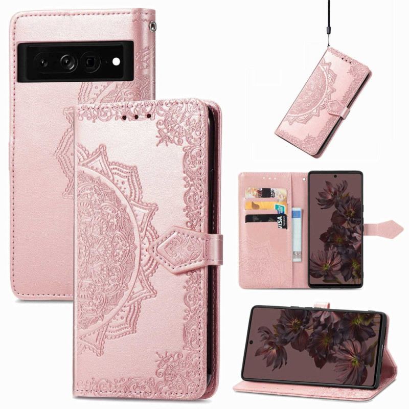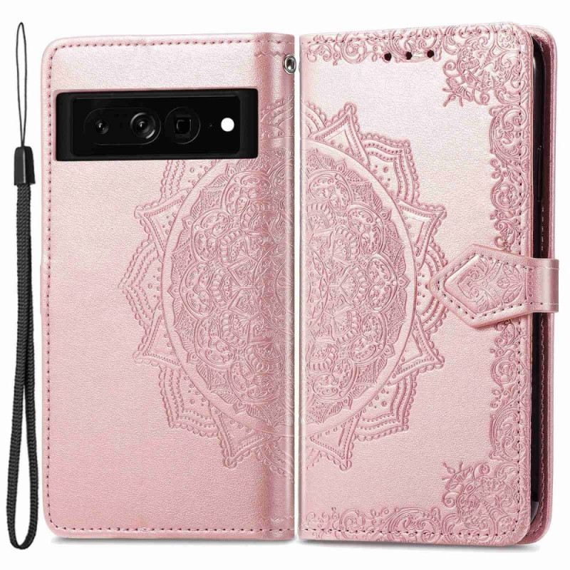 A Szíjjal Ellátott Mandala Retro Borítás Megvédi A Google Pixel 7 Pro Készüléket, Miközben Pénztárcaként És Támasztékként Szolgál.