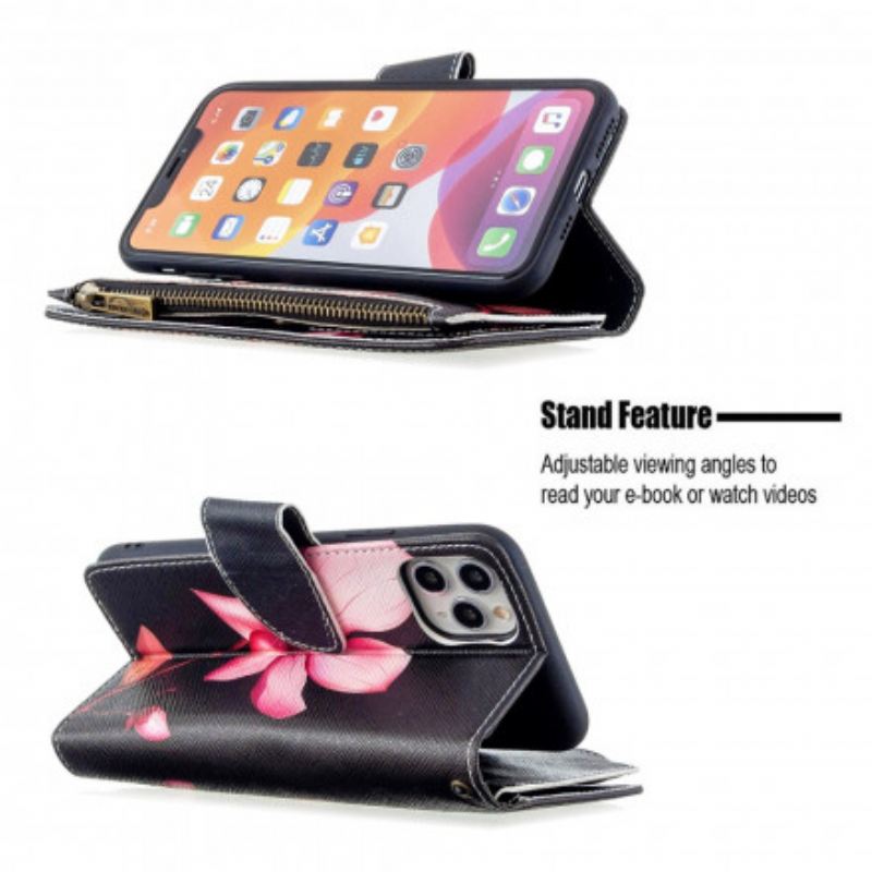 Fliptok / Bőrtok iPhone 11 Pro Max Virág Cipzáras Zseb