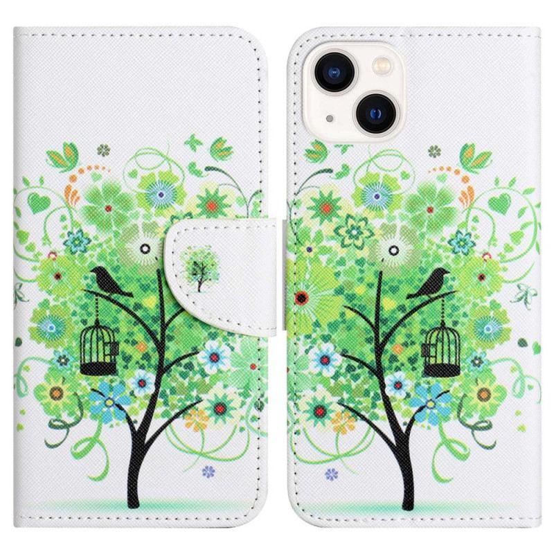 Fliptok / Bőrtok iPhone 14 Plus Zöld Lombozat