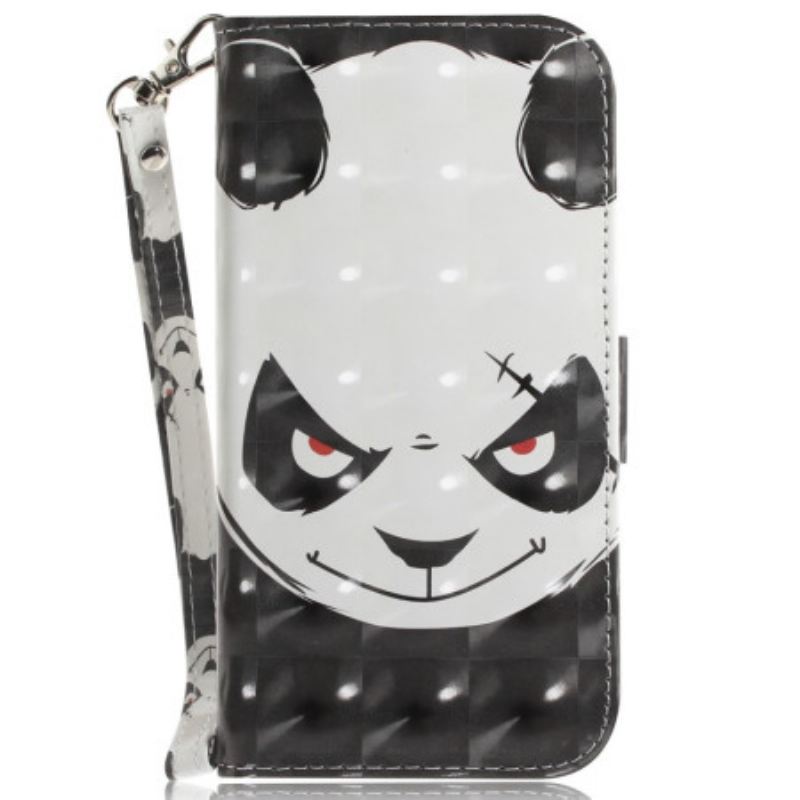 Fliptok / Bőrtok OnePlus Nord 2T 5G szíjjal Dühös Panda Zsinórral