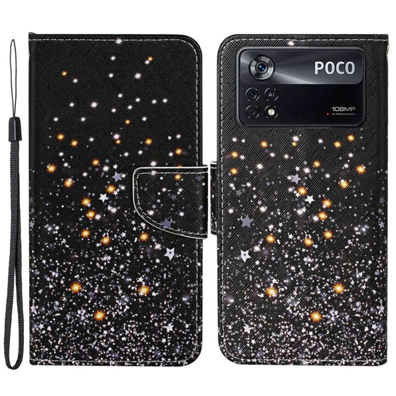 Fliptok / Bőrtok Poco X4 Pro 5G szíjjal Pántos Csillogó Hatás