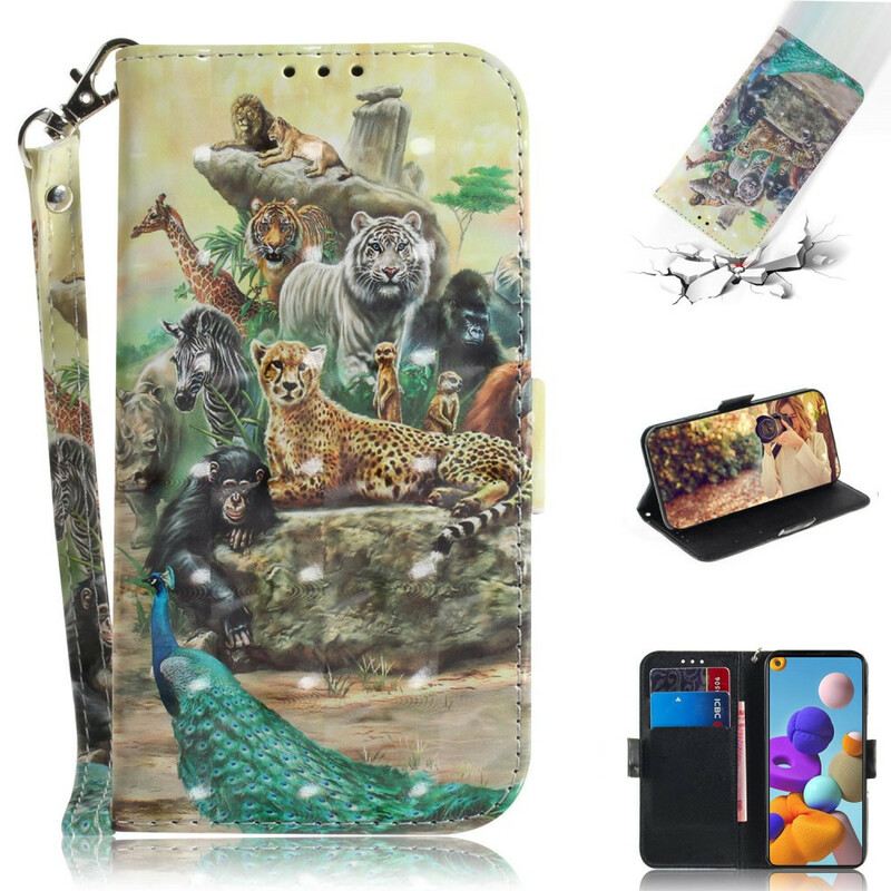 Fliptok / Bőrtok Samsung Galaxy A21s szíjjal Tanga Szafari Állatok