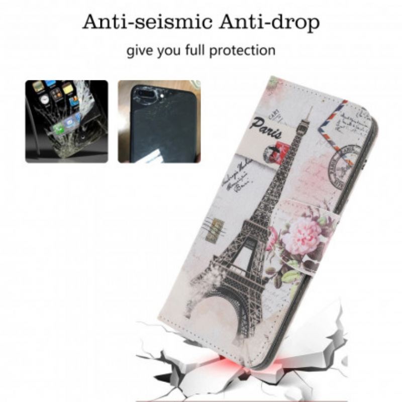 Fliptok / Bőrtok Samsung Galaxy A22 5G Retro Eiffel-torony