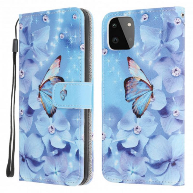 Fliptok / Bőrtok Samsung Galaxy A22 5G szíjjal Pántos Gyémánt Pillangók