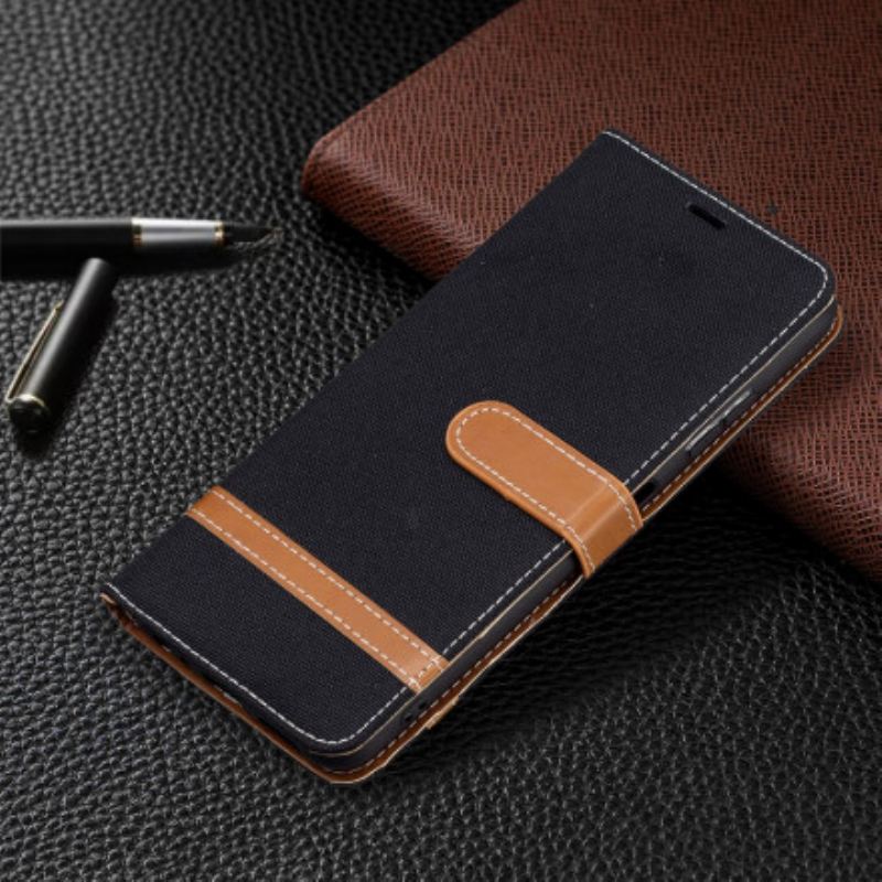 Fliptok / Bőrtok Samsung Galaxy A22 5G szíjjal Szövet És Bőr Hatású Pánt