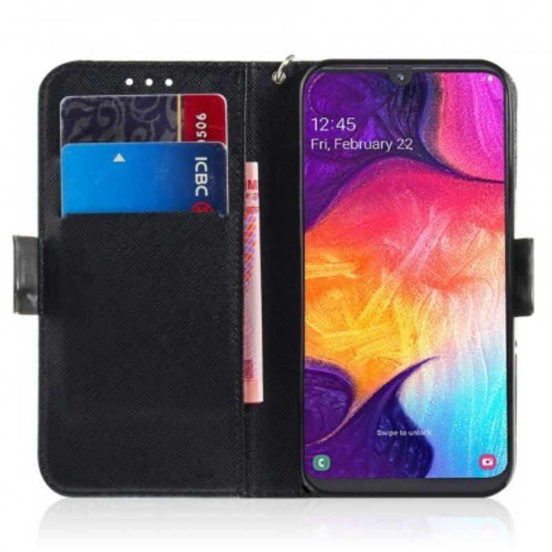 Fliptok / Bőrtok Samsung Galaxy A50 szíjjal Szürke Macska Szíjjal