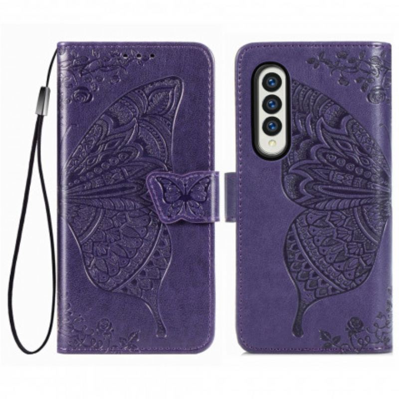 Fliptok / Bőrtok Samsung Galaxy Z Fold 3 5G Butterfly Design Zsinórral
