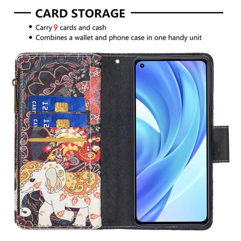 Fliptok / Bőrtok Xiaomi Mi 11 Lite 4G / 5G / 5G NE Elefánt Cipzáras Zseb