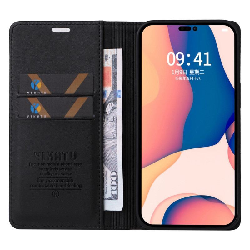 Fliptok iPhone 14 Pro Bőrtok Dekoratív Szegecsek