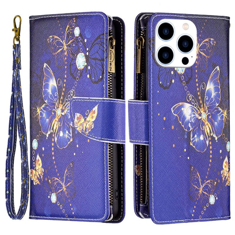 Fliptok iPhone 16 Pro Max Purple Butterflies Pénztárca Pánttal