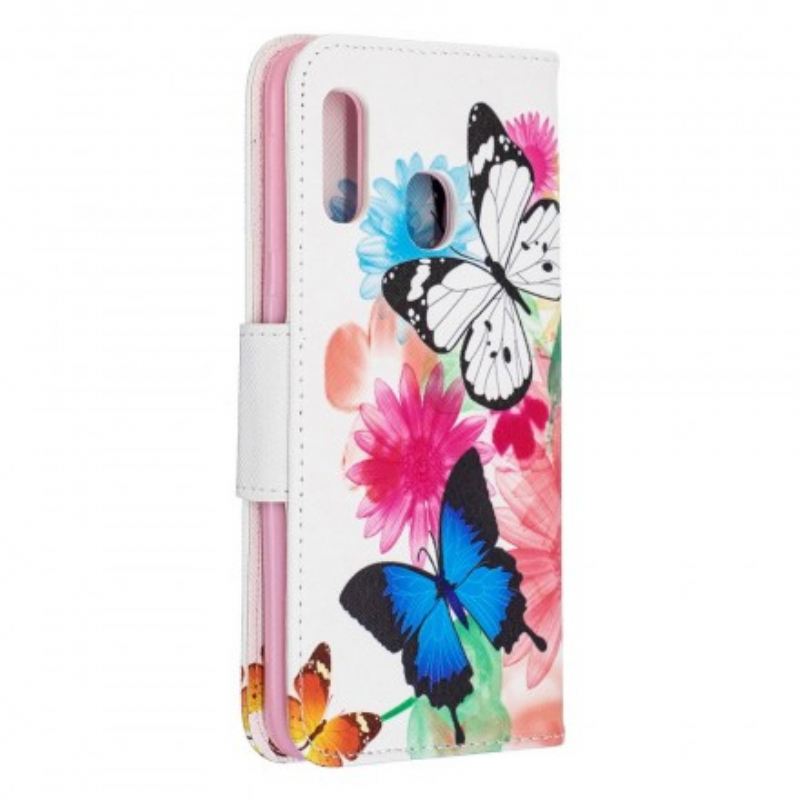Fliptok Samsung Galaxy A20e Festett Pillangók És Virágok