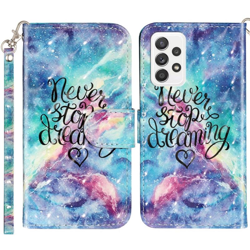 A Never Stop Dreaming Pánttal Ellátott Huzat Az Egész Samsung Galaxy A53 5G-T Rögzíti, Miközben Pénztárcaként És Állványként Is Szolgál.