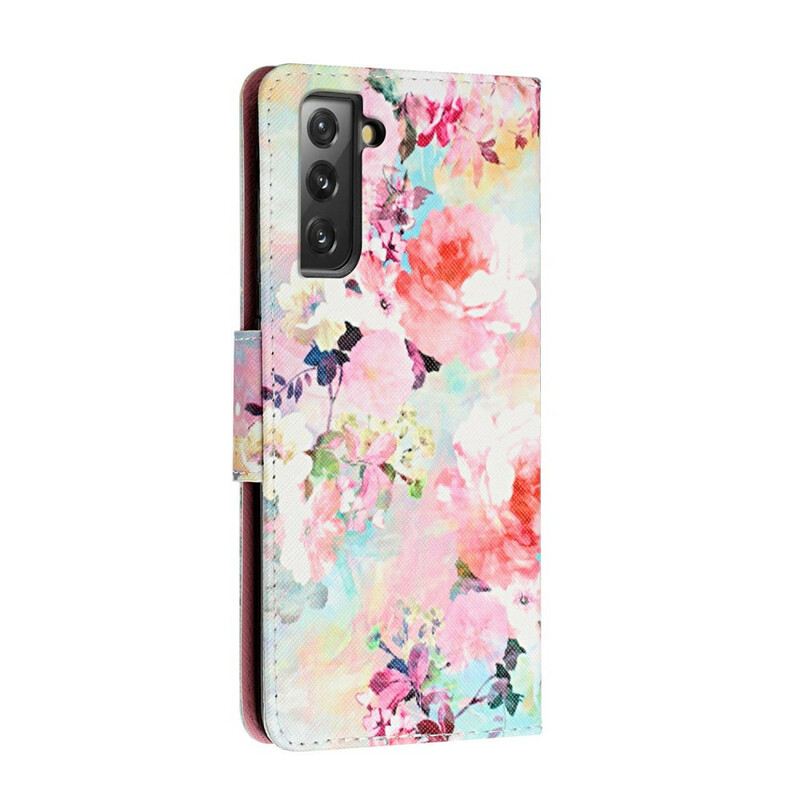 Fliptok Samsung Galaxy S21 FE szíjjal Vintage Strappy Floralies