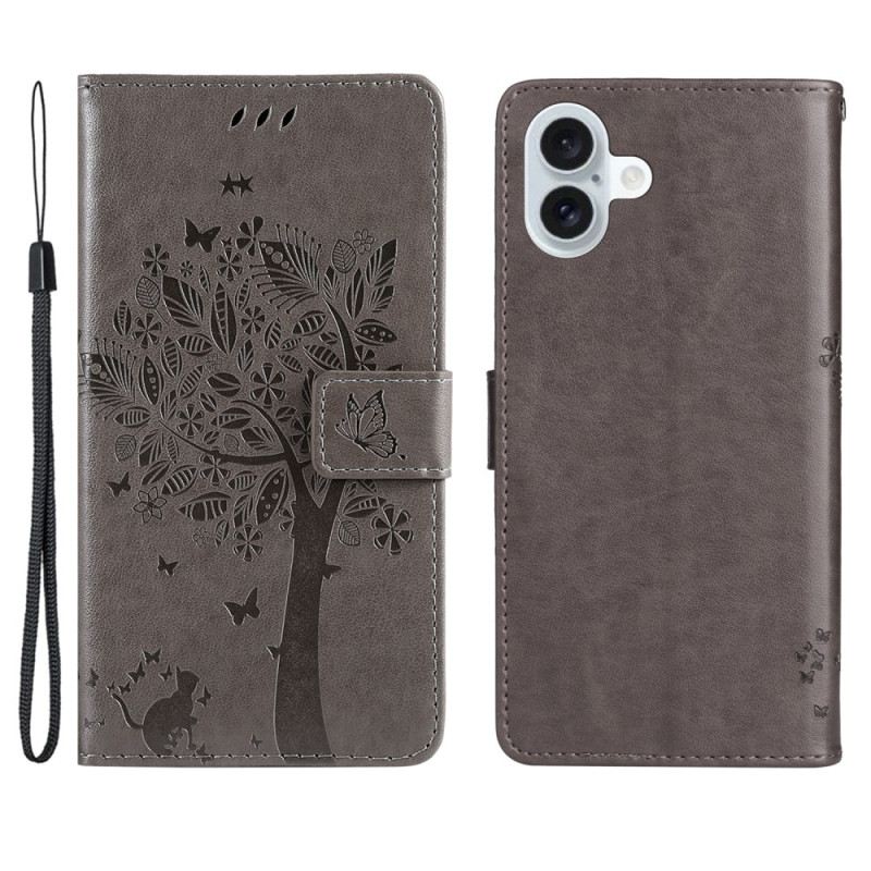 Kinyitható Bőrtok iPhone 16 Plus Macska És Zsinórfa