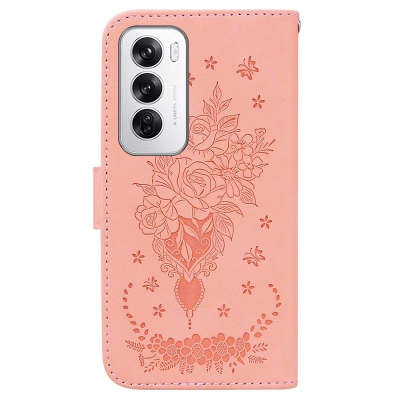 Kinyitható Bőrtok Oppo Reno 12 5g Virágos Szíj