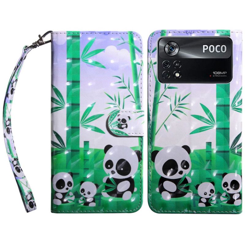 Kinyitható Tokok Poco X4 Pro 5G szíjjal Lanyard Panda Család