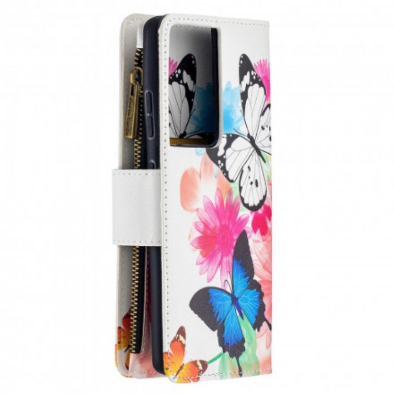 Kinyitható Tokok Samsung Galaxy S21 Ultra 5G Pillangók Cipzáras Zseb