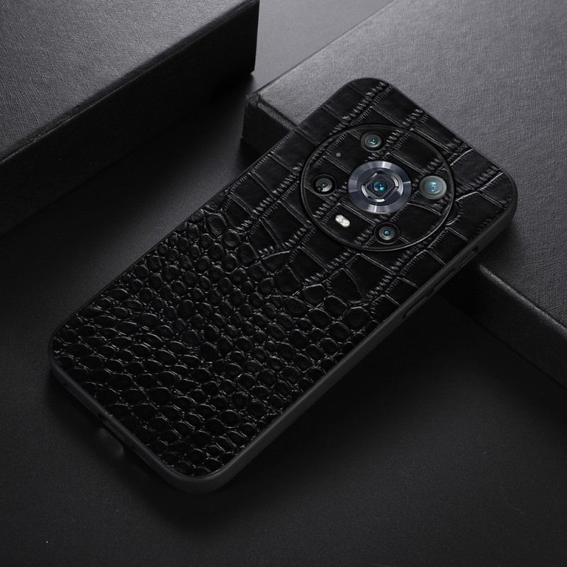 Ez A Krokodilbőr Textúrájú, Valódi Bőr Tok Fényűző Védelmet Nyújt A Honor Magic 4 Pro Számára.