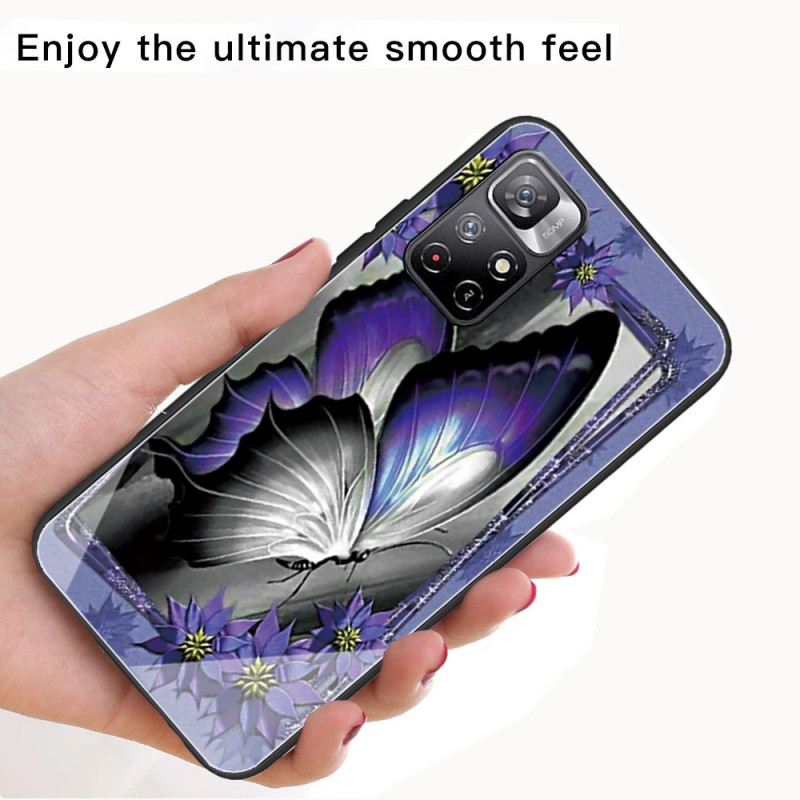 Védje Meg Poco M4 Pro 5G Készülékét Ezzel A Lila Pillangóval Díszített, Edzett Üvegből És Szilikonból Készült Tokkal.