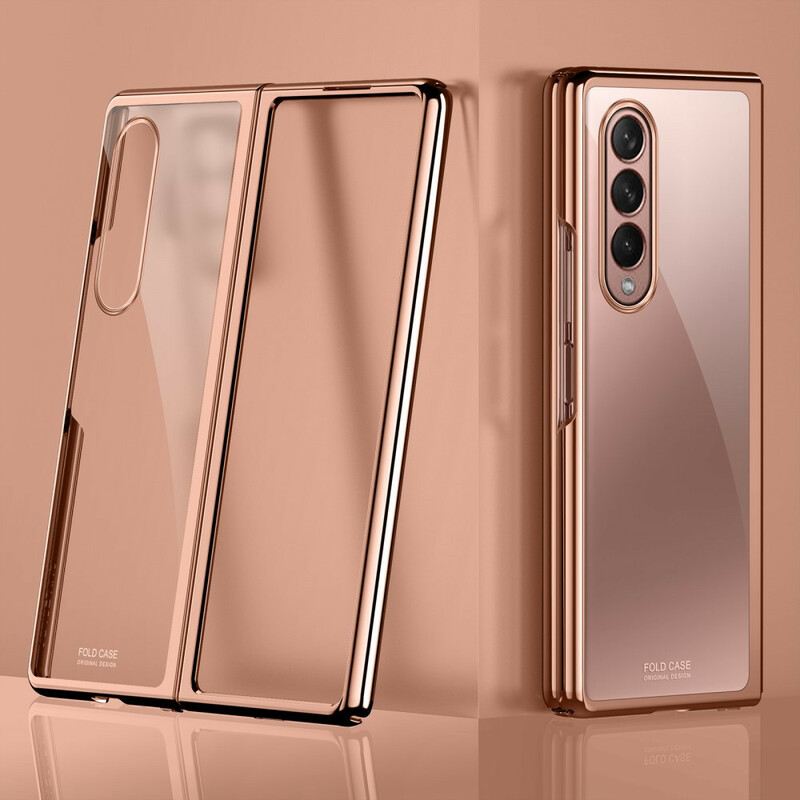 Optimálisan Rögzítse Samsung Galaxy Z Fold 3 5G Készülékét Ezzel A Fémes Élekkel Ellátott Átlátszó Tokkal.