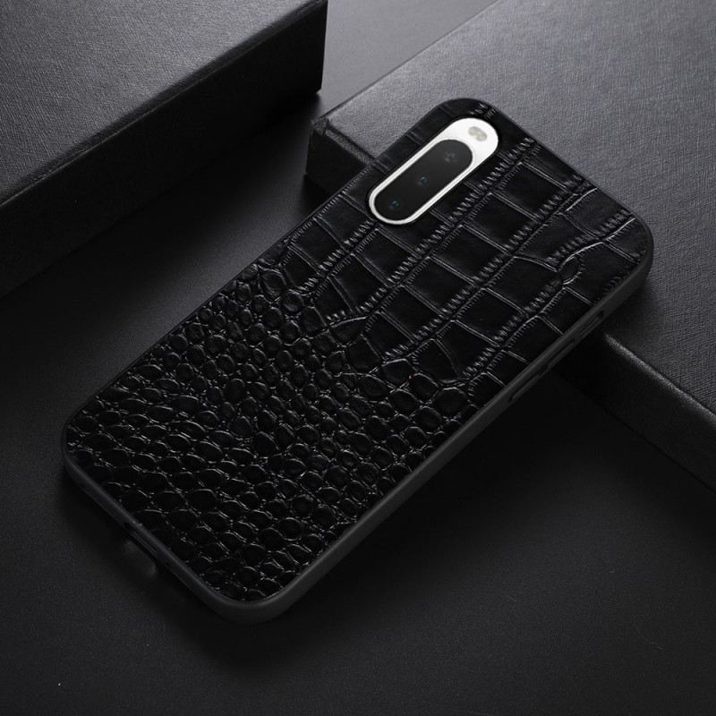 Ez A Krokodilbőr Textúrájú, Valódi Bőr Tok Fényűző Védelmet Nyújt A Sony Xperia 10 Iv Számára.